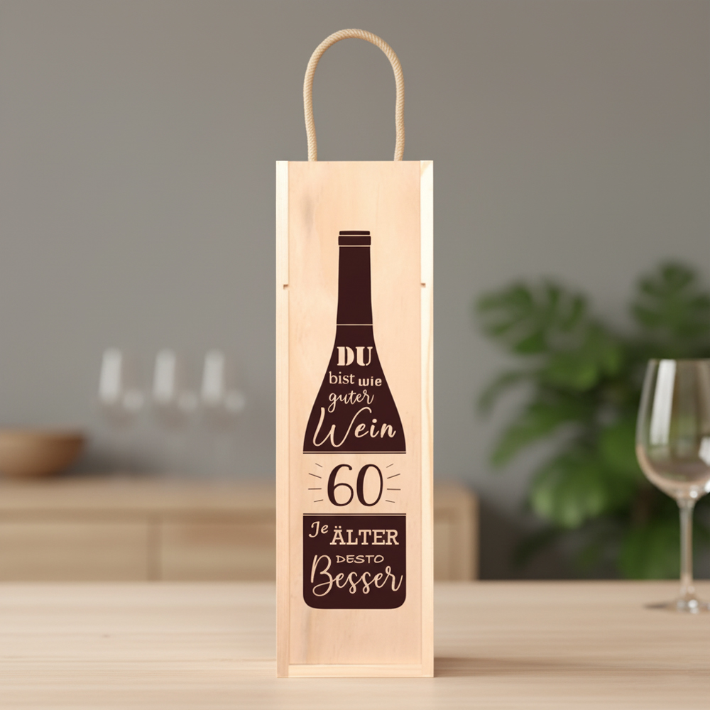 Unsere bedruckbaren Flaschenkisten sind eine elegante Geschenkidee und schützen Ihre Weinflasche stilvoll. Aus hochwertigem Holz gefertigt, versprechen sie eine ansprechende Optik und Langlebigkeit.